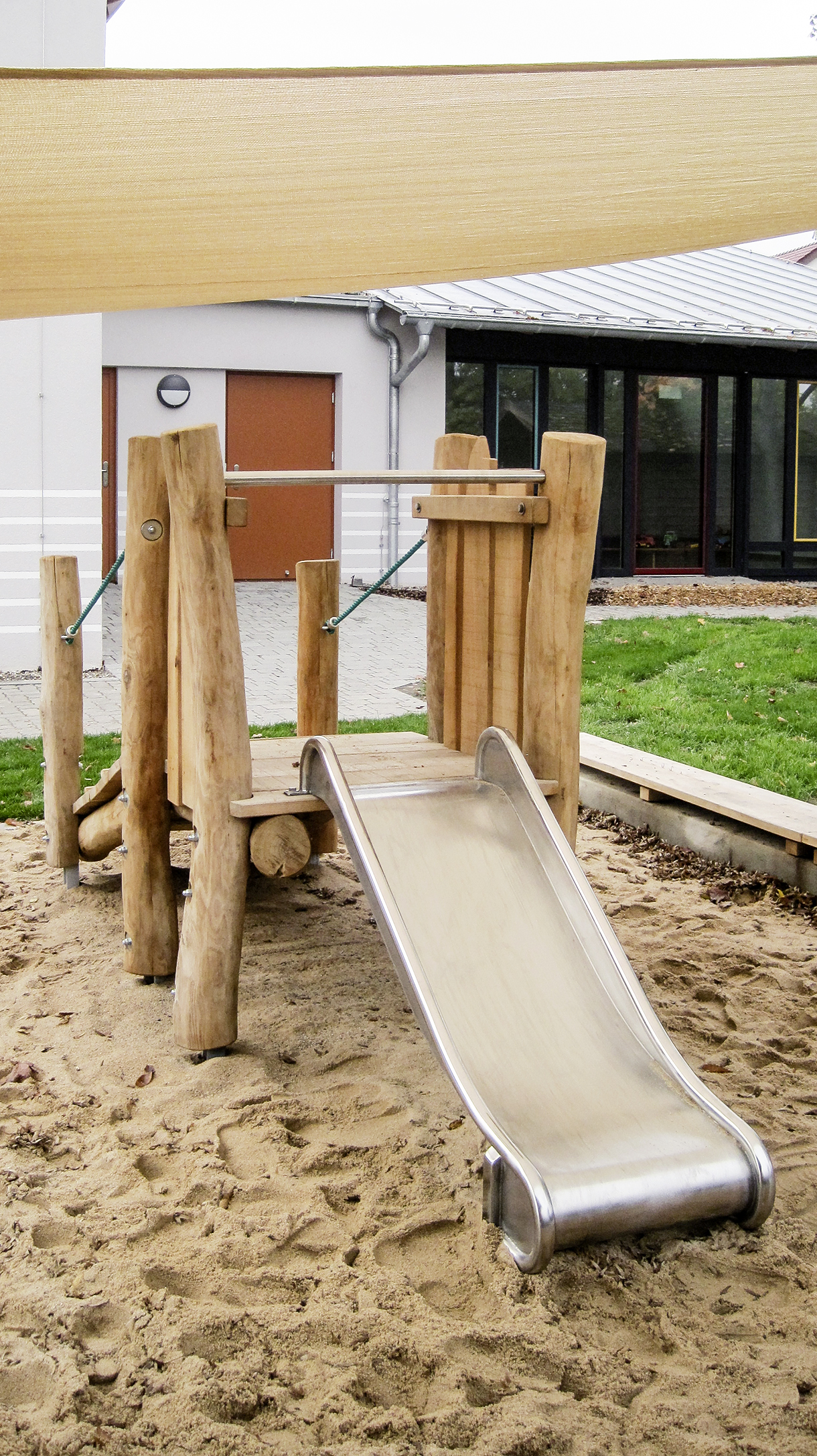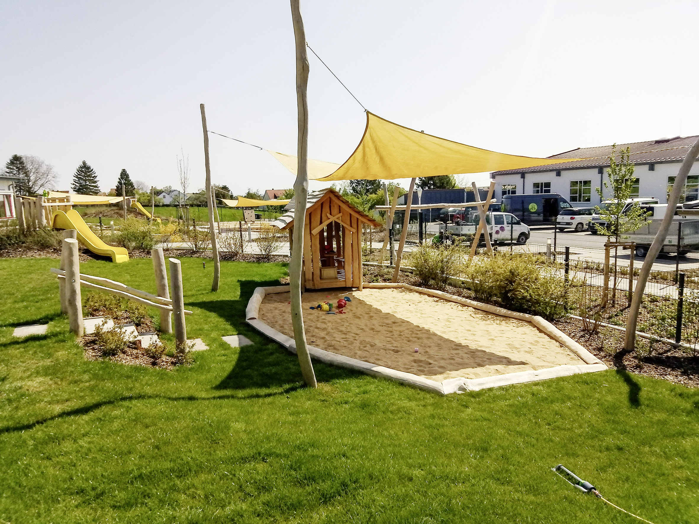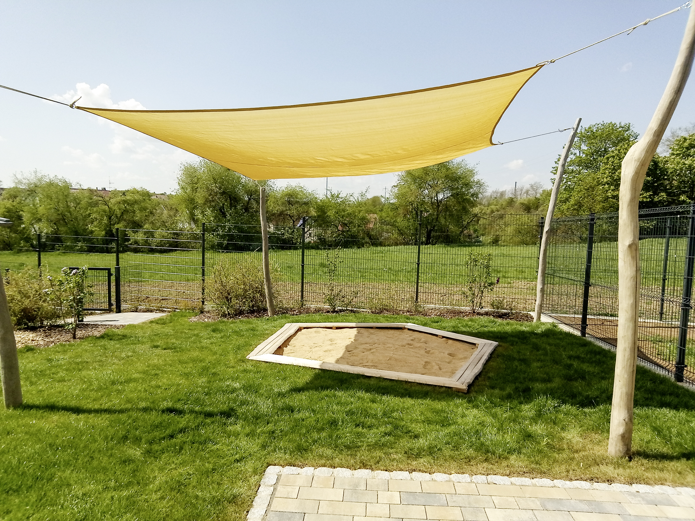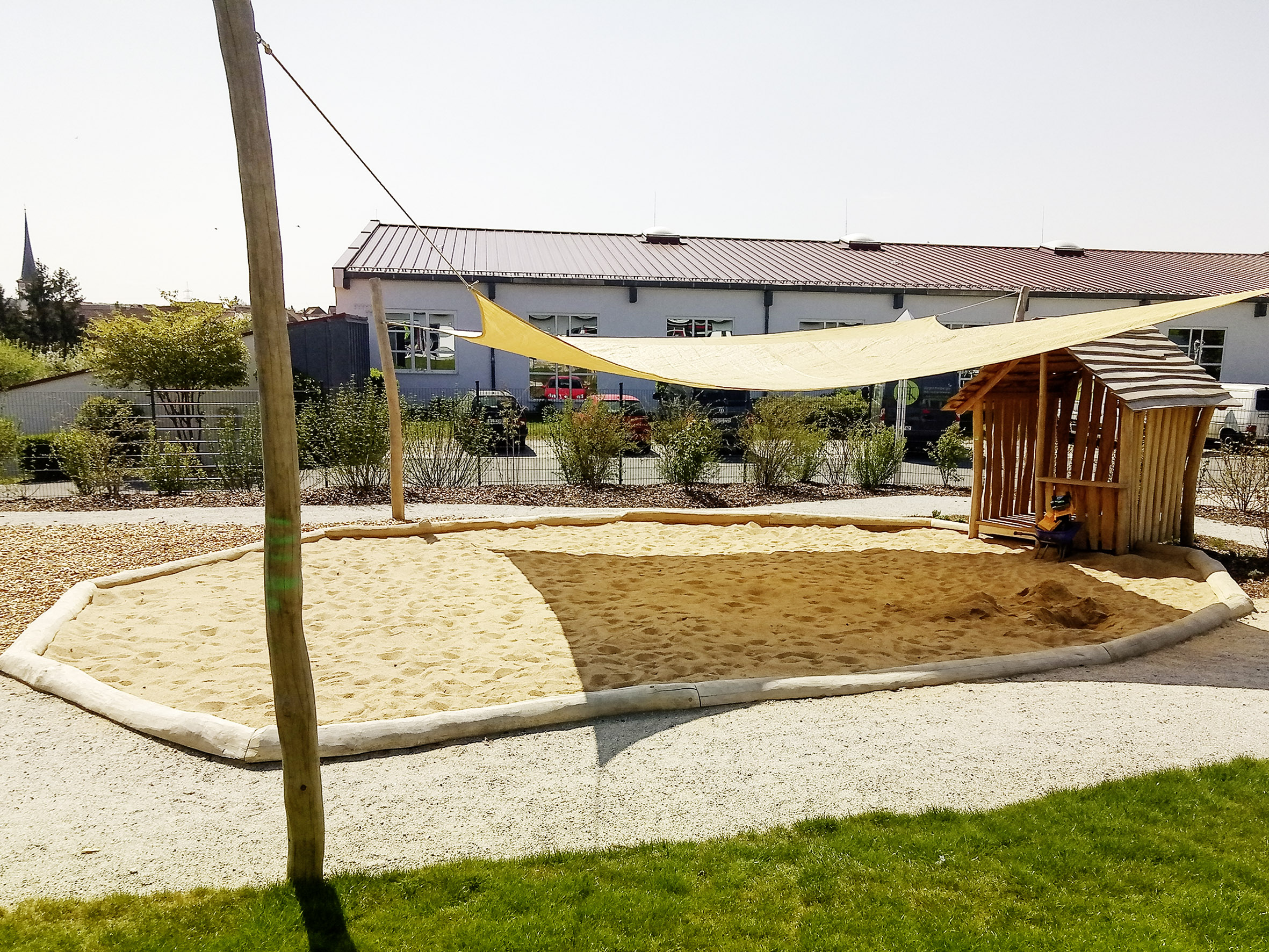 Zur Einfassungen der ausgehobenen und befestigten Sandspielflächen eignen sich Robinienstämme oder Halbrundstämme - partiell mit Holzflächen versehen um Sandkuchen zu „backen“ – sowie Findlinge, Natursteine und Granitsteine.Je nach Platzsituation sind Kombination mit einer Wasserspielanlage oder einem Spielhaus möglich. Bitte klicken Sie zur weiteren Information auch in die Rubrik Beschattung.